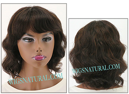 Color shown: FS1B/30. BOSS WIG, BOSS HAIR first class hair. Hair that tells everything about you. 100% premium human hair. Wide waves and bangs on a short bob! light weight, easy maintenance, extra natural. Hair length: 12". Wig weight: 3.7 oz.