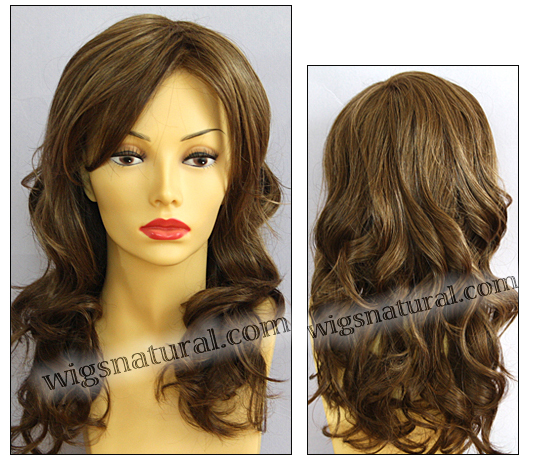 Color shown: light brown. Head size: average. Lace front wig. Color shown: mocha frost. Front: 6.25”. Crown: 11.5”. Side: 8”. Nape: 11.5”.