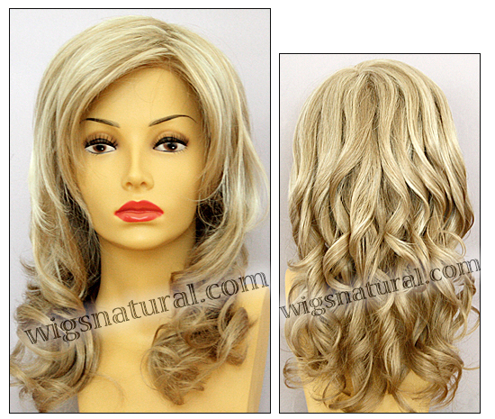 Color shown: light blonde. Head size: average. Lace front wig. Color shown: mocha frost. Front: 6.25”. Crown: 11.5”. Side: 8”. Nape: 11.5”.