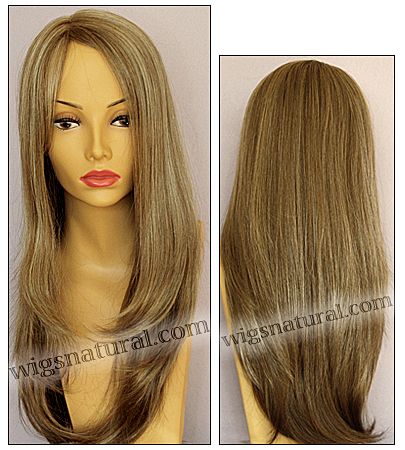 Color shown: dark blonde. Head size: average. Lace front cap construction. Front: 5.5”. Crown: 14.5”. Side: 17.75”. Nape: 15.75”. Weight: 5.93 oz (168g).