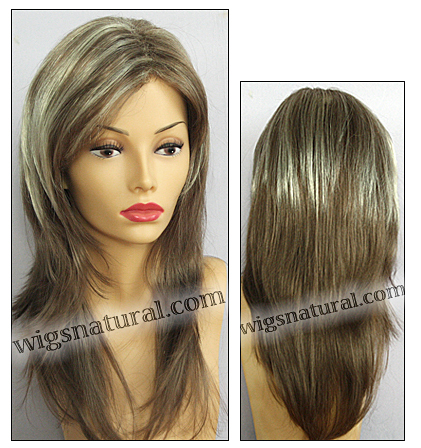 Head size: average. Open top wig. Front: 4”. Crown: 9.5”. Side: 9”. Nape: 14”.