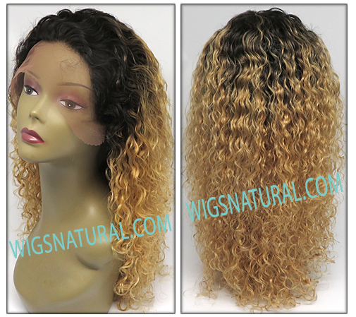 Color shown DR27M. Curly hair style. Front lace from ear to ear. Hair Length: 20 inches. Weight: 5.5 oz. Hair type: 100% REMY human hair. Wig Brand: Secret Collection.