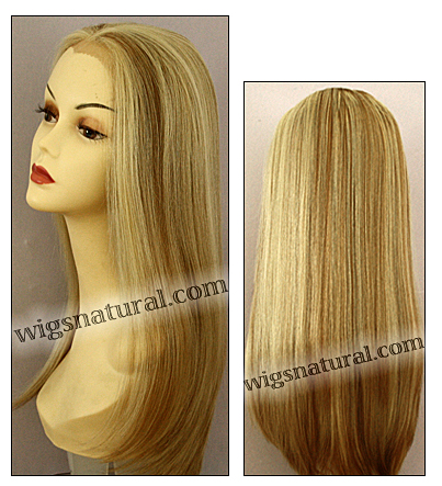 Lace front wig. Wig length: 20", weight: 5.7 oz. Hair type: Human Hair/Futura fiber Blend. Heat resistant, blow dryer and curling iron safe.