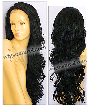 Color shown: 1B. Hair length: 26". Weight: 7.5 oz. Medium brown front lace. Hair type: Futura synthetic fiber. Wig brand: SEPIA Lace Front wigs.