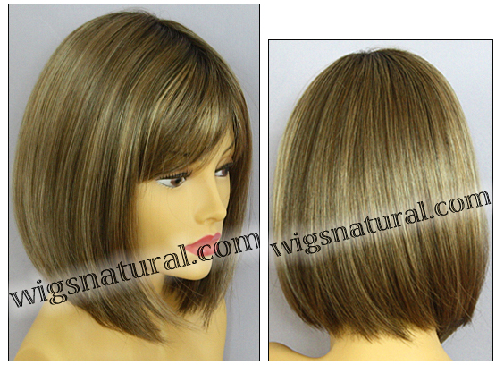 Color shown: toasted sesame. Head size: petite. Mono part wig. Color shown: light blonde. Front: 4”. Crown: 11”. Side: 6.5”. Nape: 4”.