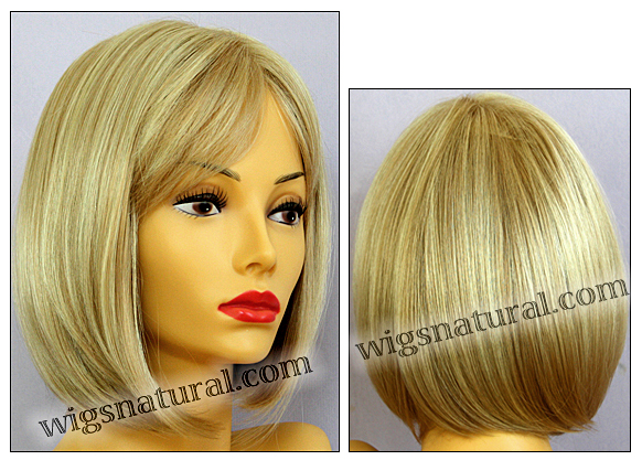 Color shown: medium blonde. Head size: petite. Mono part wig. Color shown: light blonde. Front: 4”. Crown: 11”. Side: 6.5”. Nape: 4”.