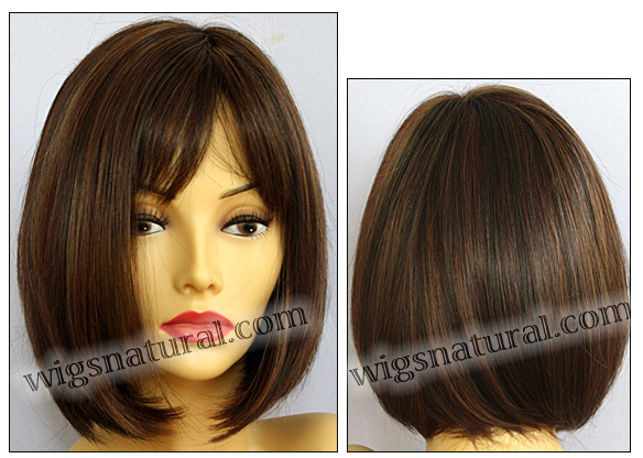 Color shown: cinnamon raisin. Head size: petite. Mono part wig. Color shown: light blonde. Front: 4”. Crown: 11”. Side: 6.5”. Nape: 4”.