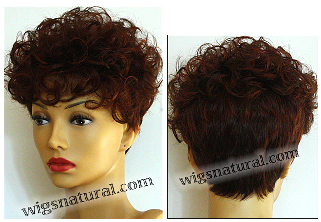 Color shown: dark red. Head size: average. Open top wig. Color shown: dark blonde. Front: 3.75”. Crown: 4.25”. Side: 1.75”. Nape: 1.75”. Weight: 2.43 oz. (69 g.) Available colors: almond breeze, amaretto cream, black, chocolate caramel, chocolate cherry, cinnamon raisin, creamed coffee, dark blonde, dark brown, dark grey, dark red, frosted, ginger cream, golden nutmeg, light blonde, light brown, light grey, lighter red, medium blonde, medium brown, medium grey, mocha frost, sparkling champagne, toasted sesame, vanilla butter. To see what the actually hair colors look like, please check the page Envy Wig Color Chart - on Wigs under the Color Chart category.