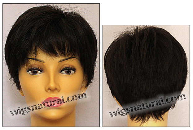 Color shown: dark brown. Head size: average. Open top wig. Front: 3.25”. Crown: 3.25”. Side: 2.25”. Nape: 2”. Weight: 1.76 oz (50 g)