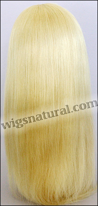 Hair color shown: #19 on Natural Human Hair Color ring. (Natural platinum blonde hair color). Hair length shown: 22” from crown to end. Hair density shown: 130%.
