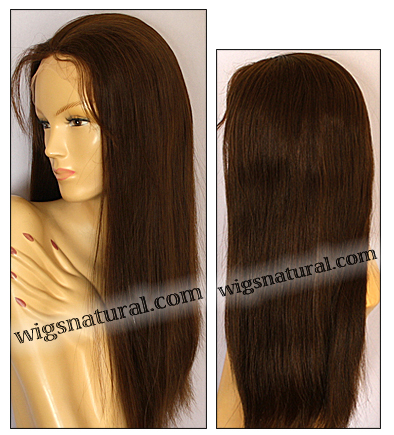 Cap Construction shown: 5” x 5.5” silk top, Swiss lace at top and front, stretch lace at other parts. Adjustable strap at nape.