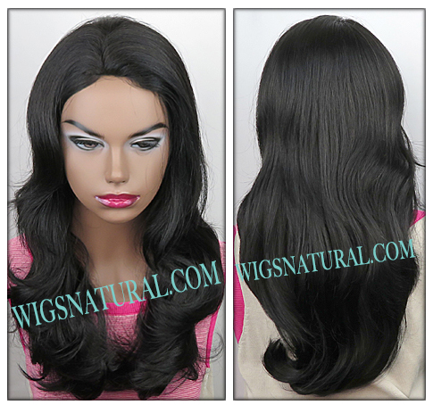 Color shown: 1B. Mono top cap construction. Hair Length: 22 inches. Weight: 6.3 oz. Hair type: 100% human hair. Wig Brand: Elegante Wig Collection.