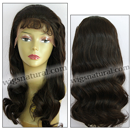 Color shown: #2.Body wave style with natural baby hair. Hair length: 22". Weight: 6.0 oz. Light brown front lace. Hair type: REMY 100% human hair. Wig Brand: Hollywood Hair Fantasies.