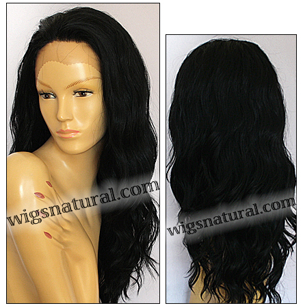 Hair length: 22". Weight: 5.8 oz. Medium brown front lace. Hair type: Futura synthetic fiber. Wig brand: SEPIA Lace Front wigs.