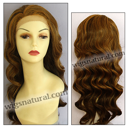 Color shown: SF2016. Hair length: 22". Weight: 6.3 oz. Light brown front lace. Hair type: 100% REMY fiber hair. Wig Brand: Sister Wigs.