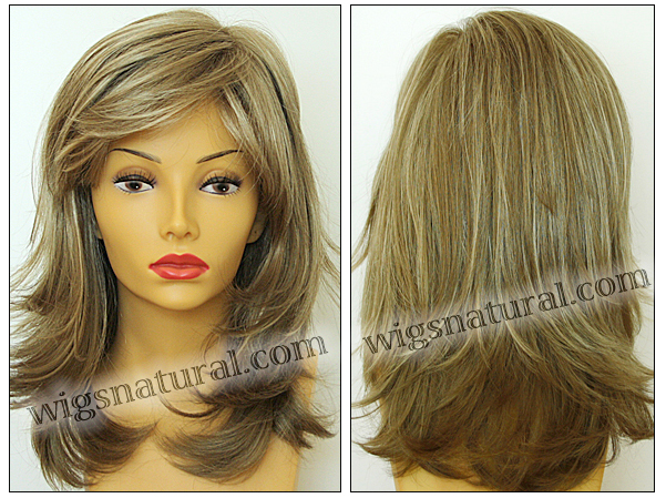 Color shown: ginger cream. Head size: average. Mono part wig. Color shown: light brown. Front: 4.5”. Crown: 10”. Side: 10”. Nape: 10.75”.