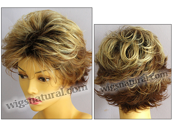 Color shown: golden nutmeg. Head size: average. Open top wig. Front: 4.5”. Crown: 3.25”. Side: 3.25”. Nape: 2.75”.