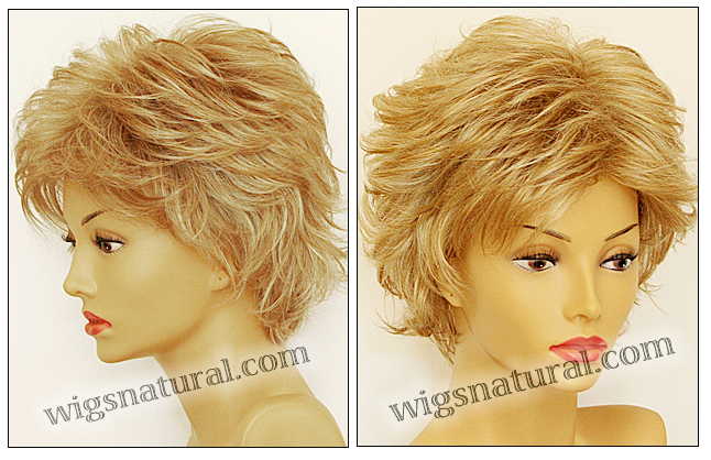 Color shown: vanilla butter. Head size: average. Open top wig. Front: 4.25”. Crown: 4”. Side: 3.5”. Nape: 3.5”.