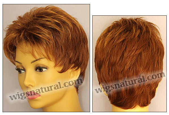Color shown: lighter red. Head size: average. Open top wig. Front: 2”. Crown: 2.5”. Side: 2”. Nape: 1.75”.