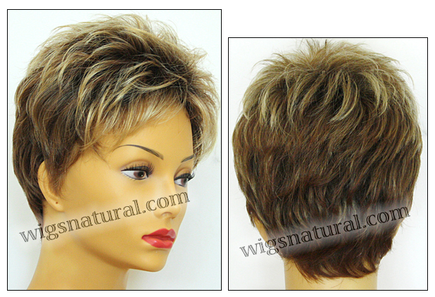 Color shown: golden nutmeg. Head size: average. Open top wig. Front: 2”. Crown: 2.5”. Side: 2”. Nape: 1.75”.