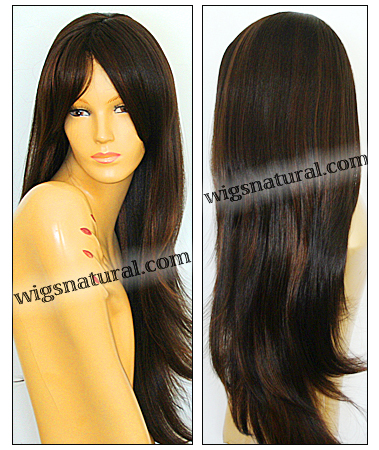 Color shown: FS4/30. Straight long layered wig. Hair Length: 26 inches. Weight: 7.3 oz. Hair Type: 100% kanekalon, Toyokalon fiber. Wig Brand: Magic Touch Collection.